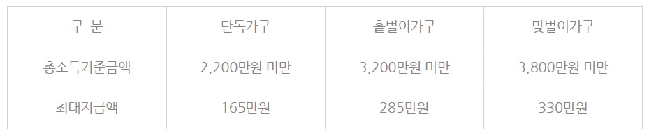 2. 가구유형에 따른 근로장려금 지급가능 금액