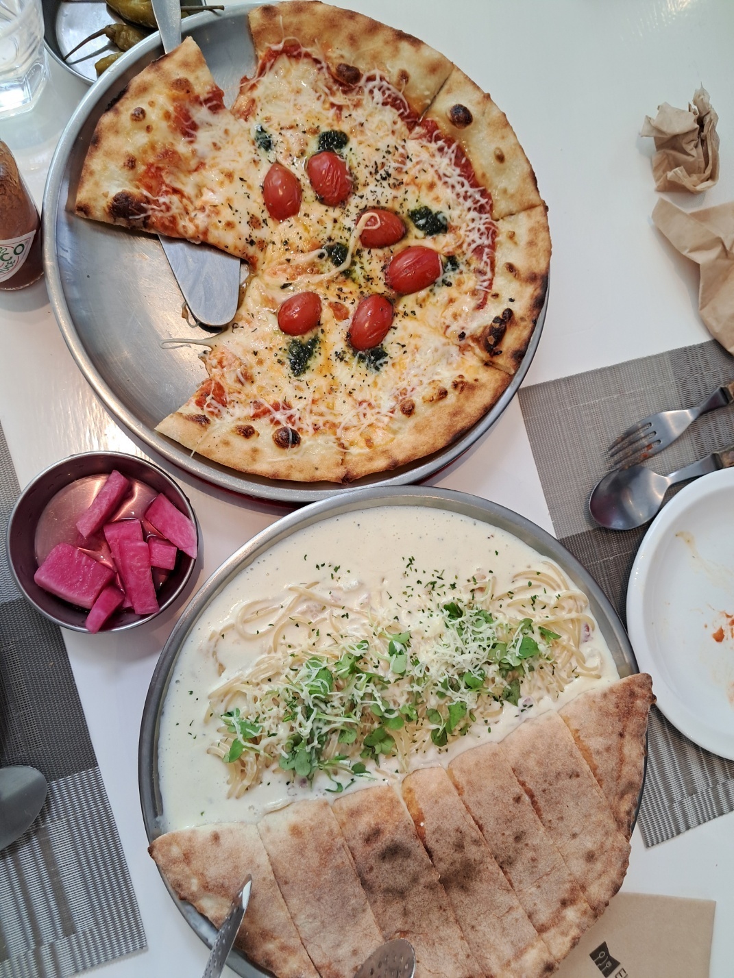 까르보나라 칼조네 와 마르게리타 화덕피자.