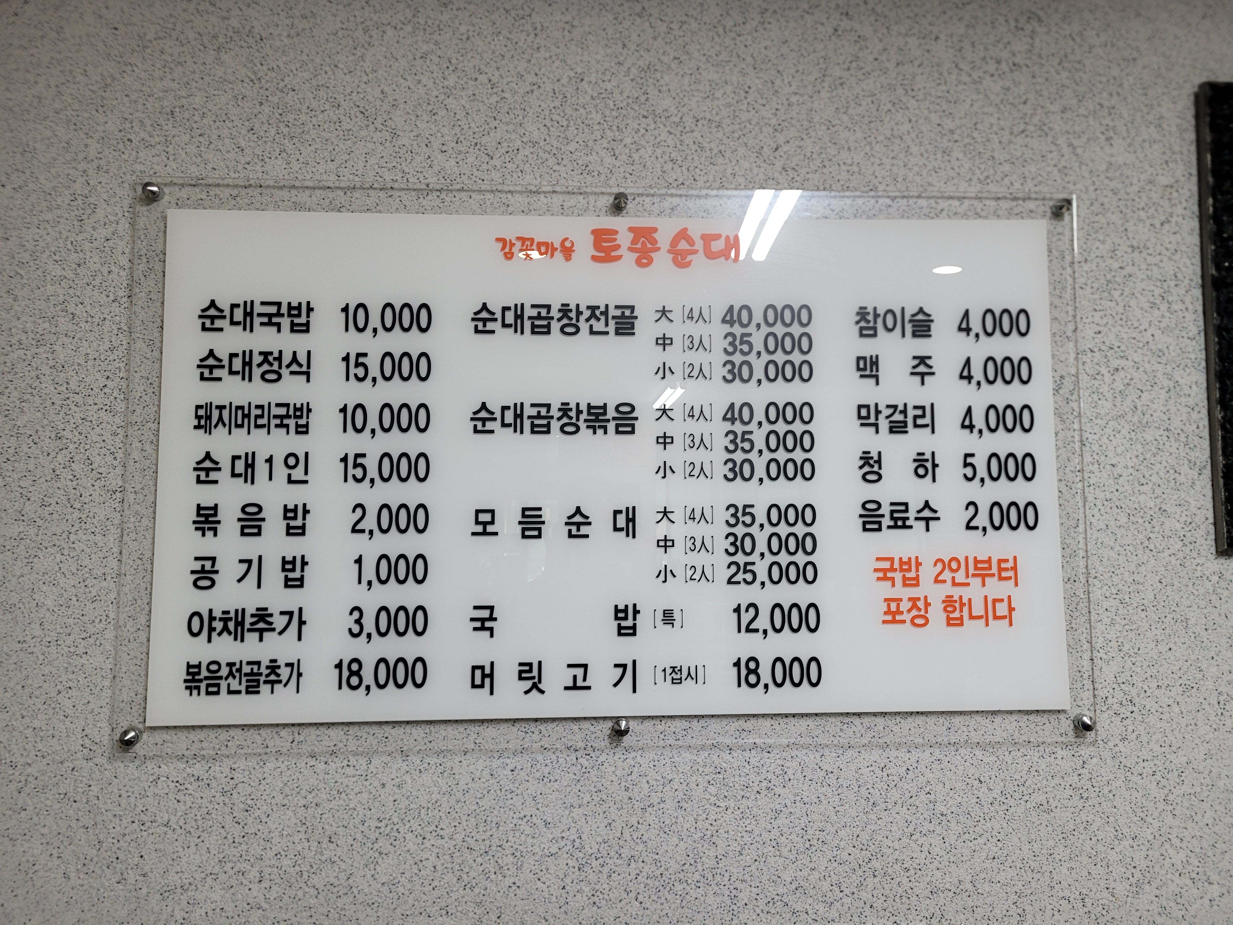 해장을 하거나 술안주로도 정말 좋은 순대와 국밥을 팔고 있다.