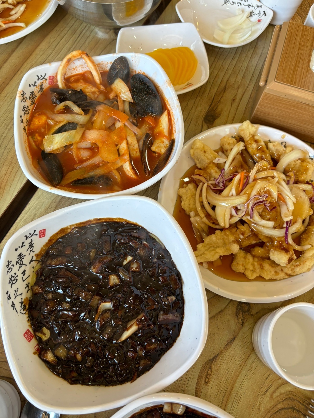 기본으로 짜장면과 짬뽕을 시키고 맛있는 탕수육도 주문했다.
