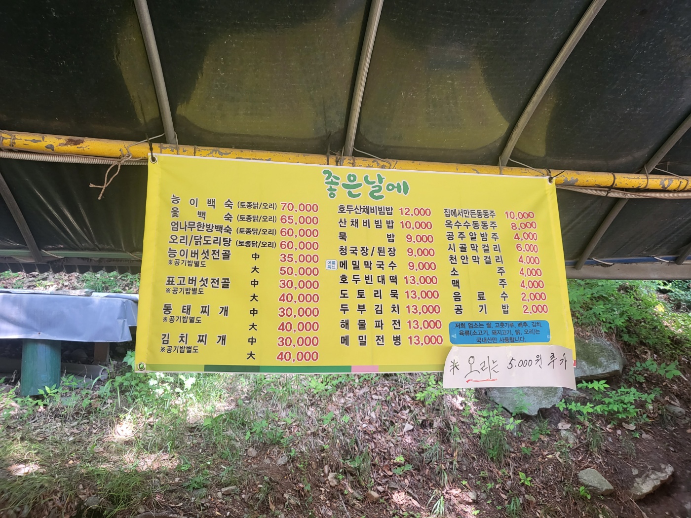 산에서 덥다고 힘들다고 물을 많이 먹었더니 이 맛있는 음식을 더 먹지 못한 것이 못내 아쉬웠다.