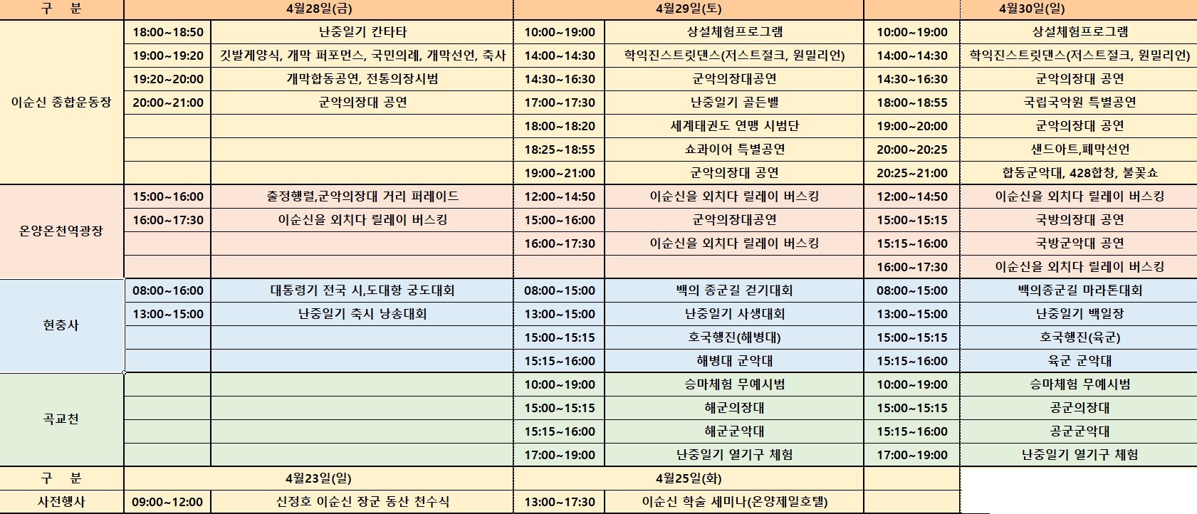 성웅이순신 축제 일정표